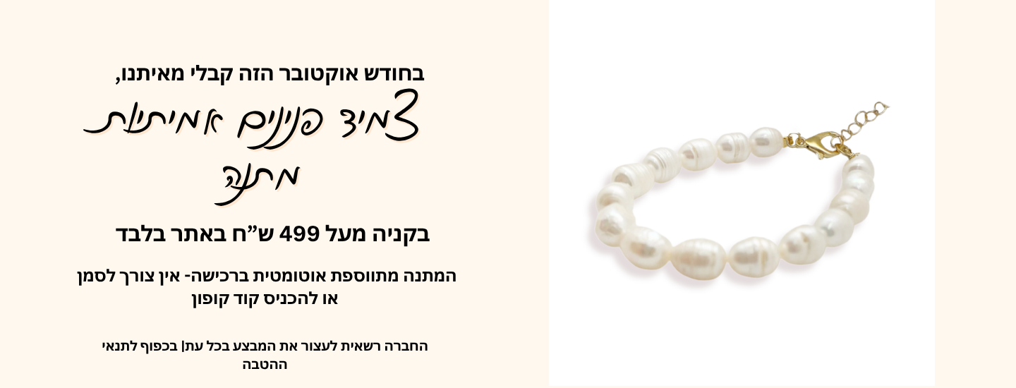 משלוח חינם בקניה מעל 299 ש"ח וגם צמד פנינים מתנה ברכישה מעל 499 ש"ח
